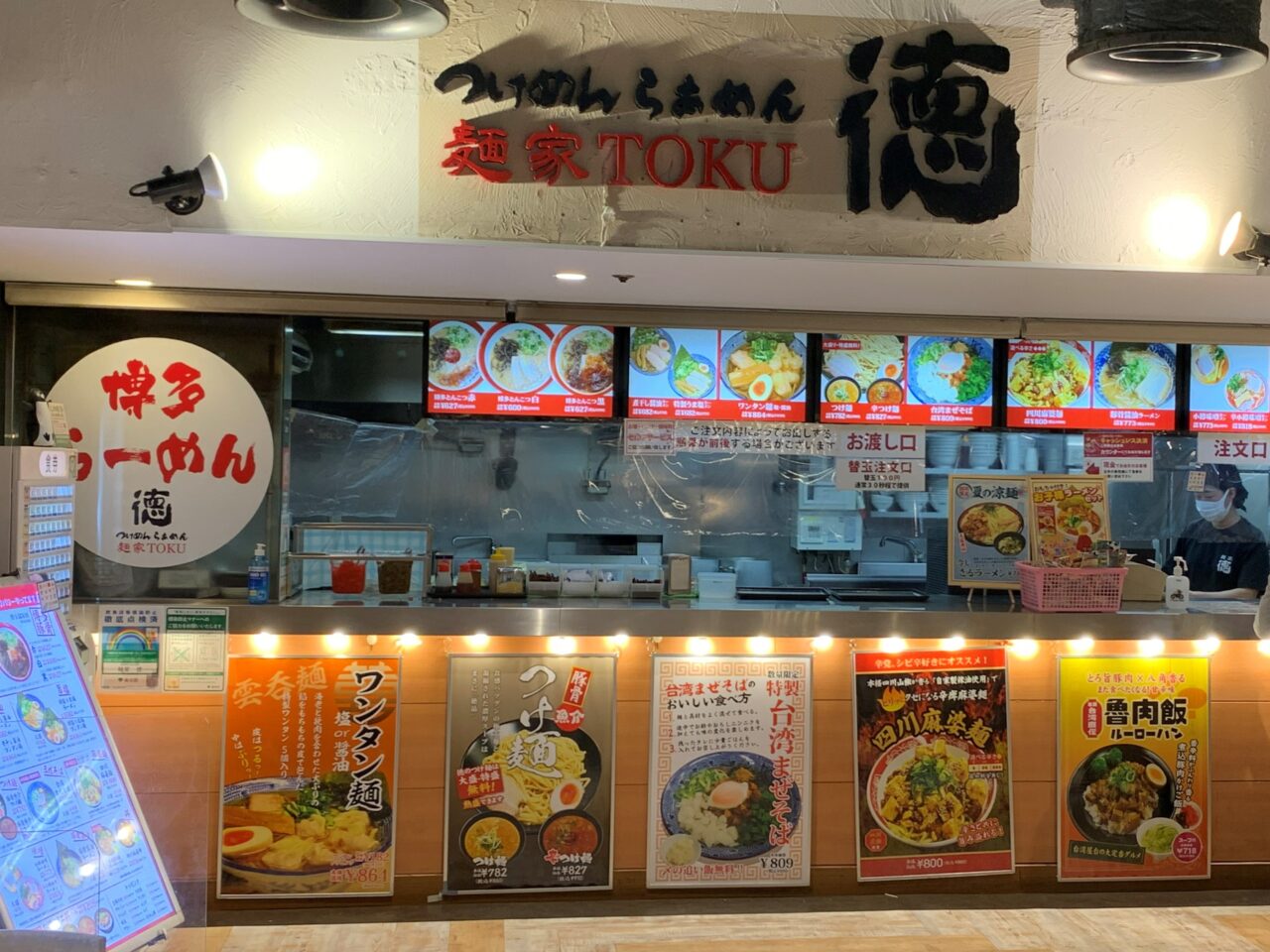 麺屋 徳は晴海トリトンスクエアの1F、フードコート入口から正面の方に進むとあります。